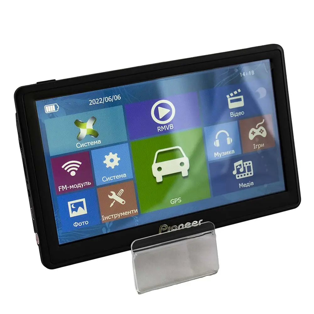 GPS навигатор Pioneer PM-720 с шикарным экраном 7" и разрешением , оперативной памятью 512 MB отлично подходит как для грузовика так и для легкового автомобиля.