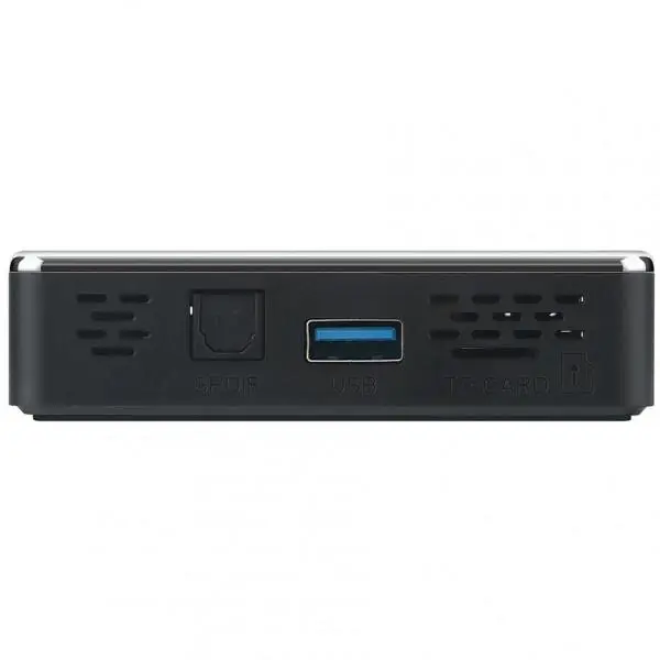 На корпусе приставки размещены такие порты и разъемы как USB 3.0, USB 2.0, HDMI 2.0, SPDIF, слот для карты памяти MicroSD, а также Type-C для подключения питания. Беспроводные интерфейсы представлены двухдиапазонным Wi-Fi b/g/n/ac 2.4/5.8 ГГц и Bluetooth.