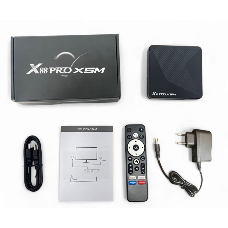 ТВ приставка X88 Pro X5M 4/32 — универсальное решение для создания современного Smart TV дома. Мощный процессор, поддержка 4K, AV1, Wi-Fi 6 и LAN 1 Гбит/с делают устройство отличным выбором для мультимедиа, онлайн-кинопросмотра и IPTV в Минске.